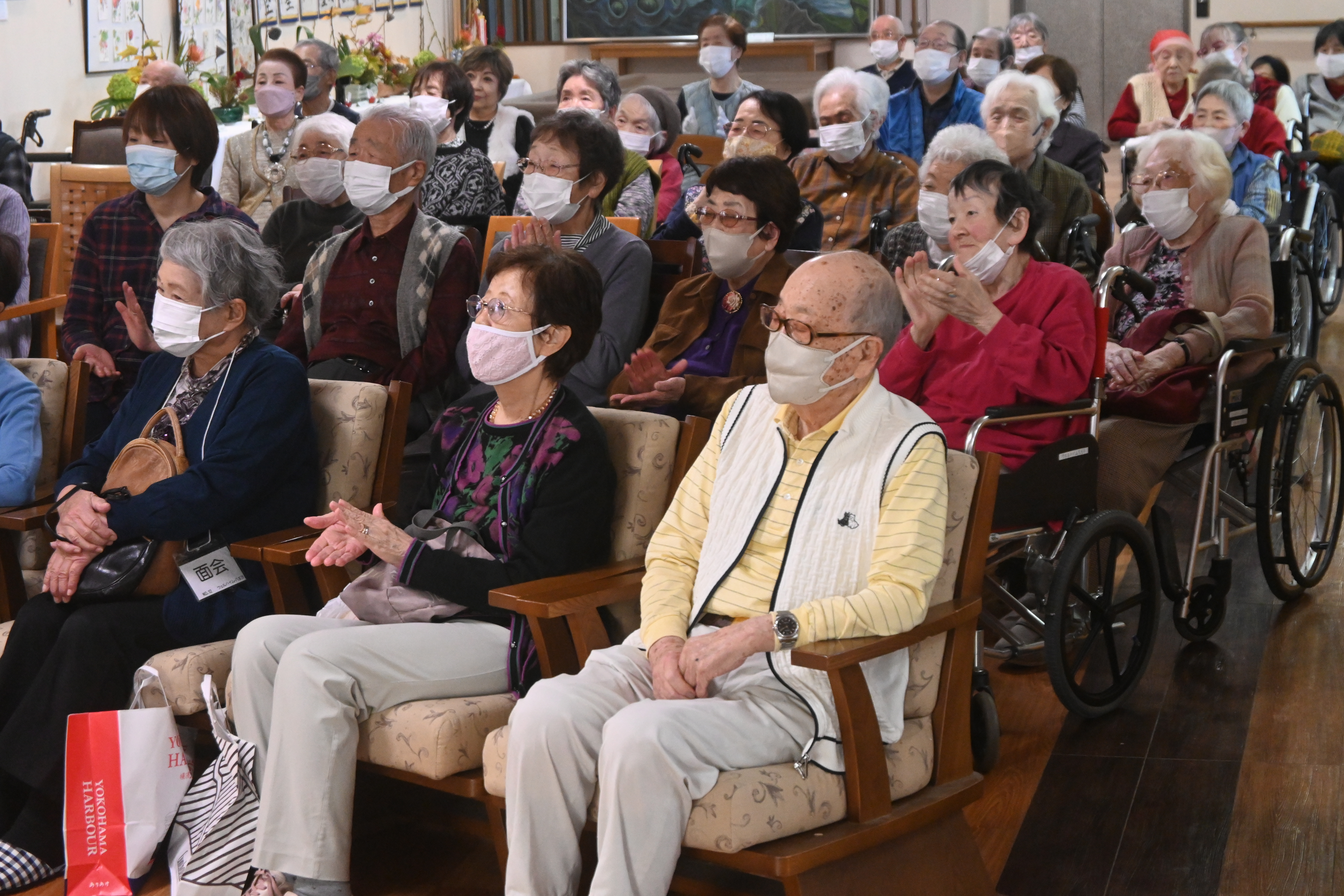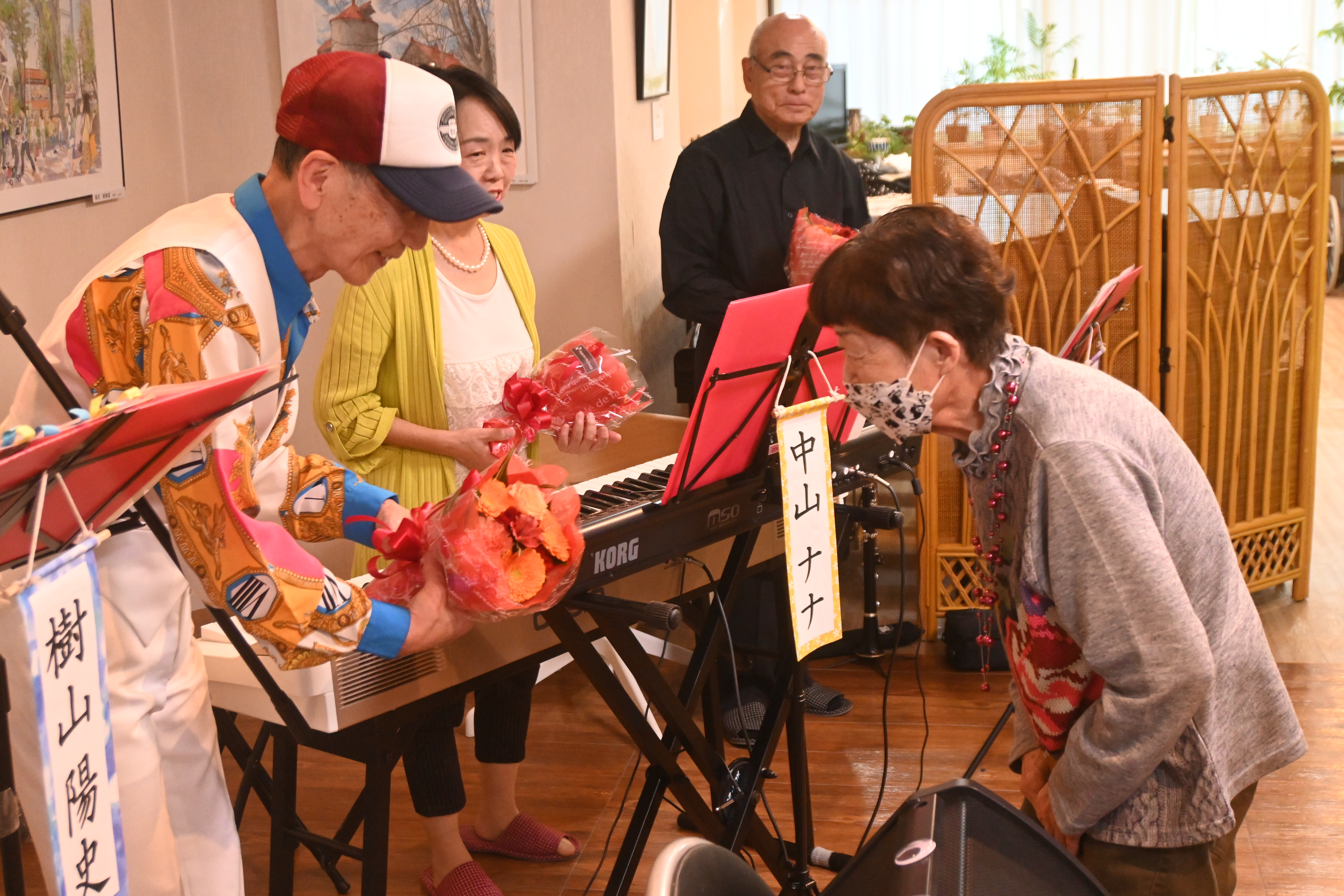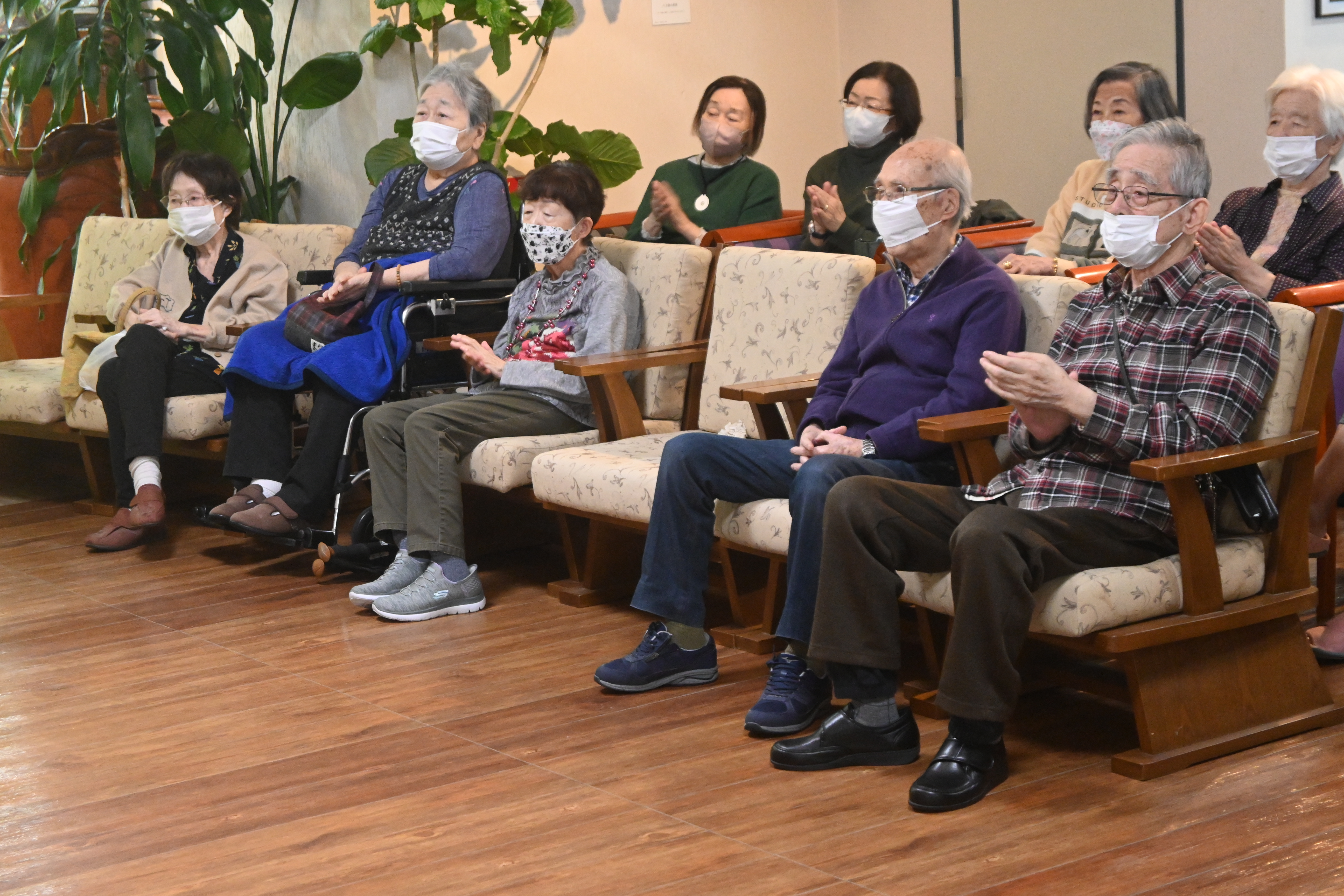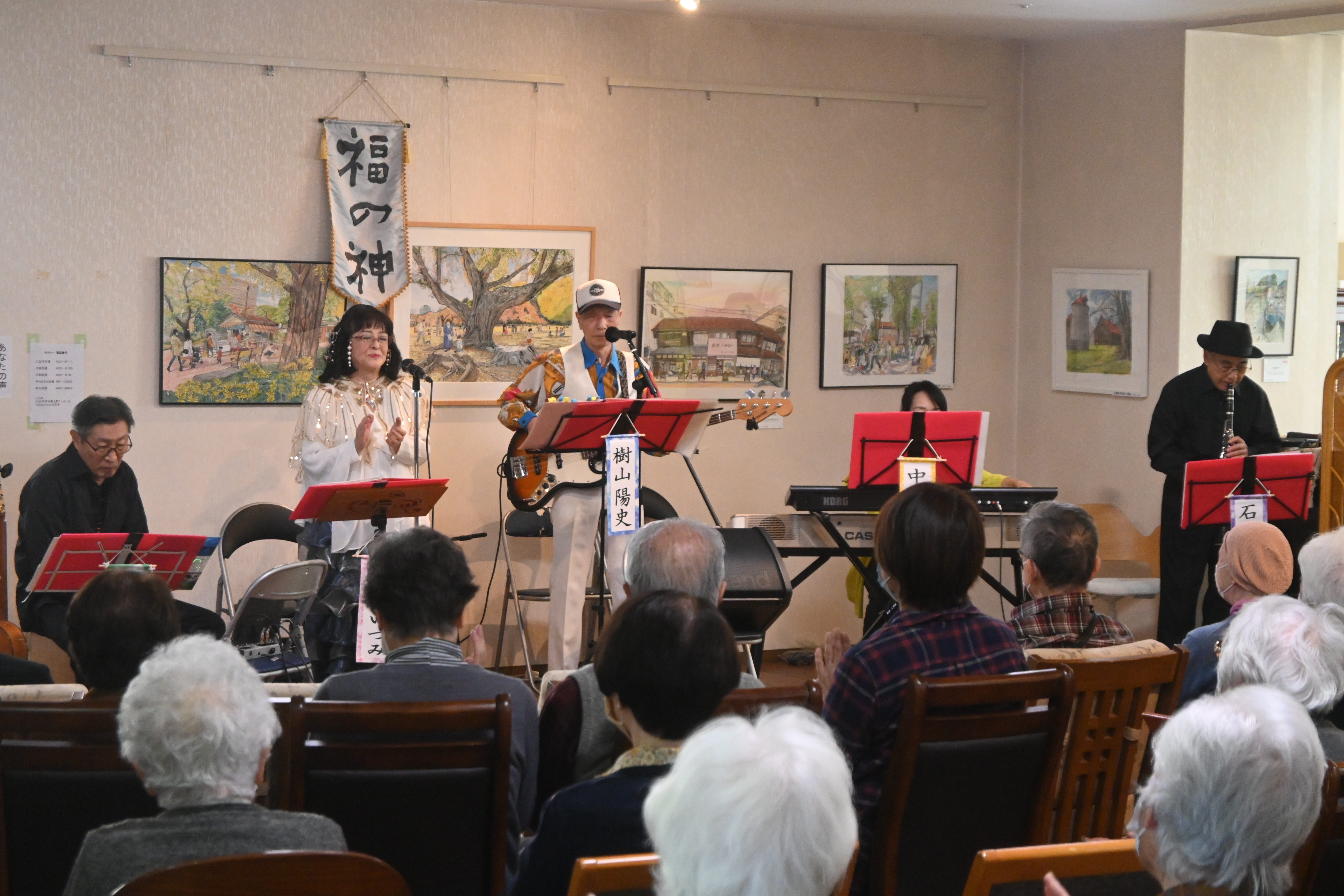 2025 年 11 月 5 日公開 福の神コンサート(八王子施設) #ウェルハイム・八王子 #令和7年(2025年) 福の神コンサート (八王子施設) 恒例となりました 福の神 コンサート 福の神バンドの皆様 演奏を楽しむ入居者の皆様です 演奏を楽しむ入居者の皆様です 演奏を楽しむ入居者の皆様です 楽しい演奏をしてくださった福の神バンドの皆様に感謝の花束を贈呈しました♪ 懐メロ・オールディーズ・演歌・民謡等々 ピアノ・ギター・三味線・打楽器・クラリネット等の様々な楽器を駆使した 幅広いジャンルの歌と演奏を楽しみました。