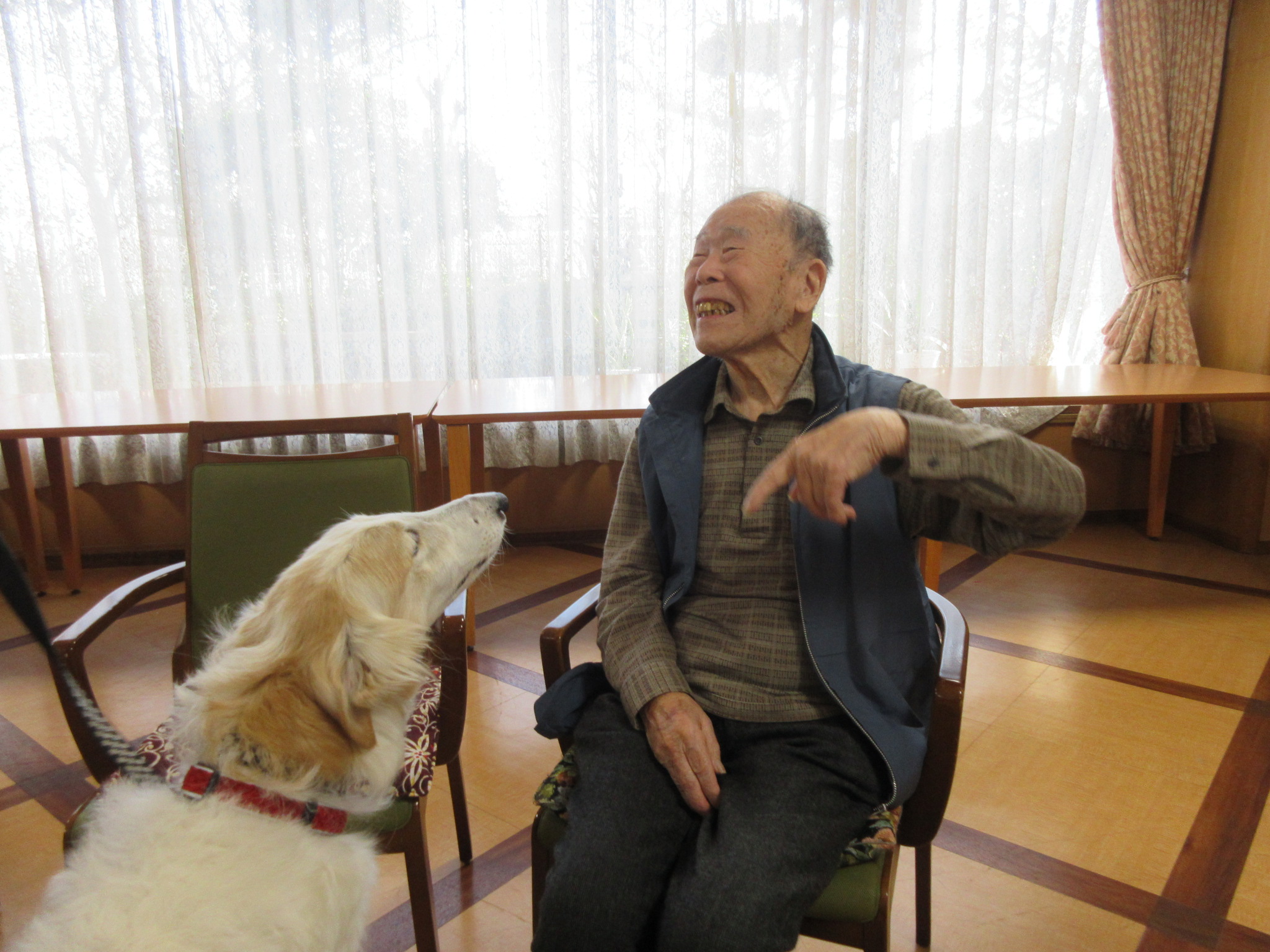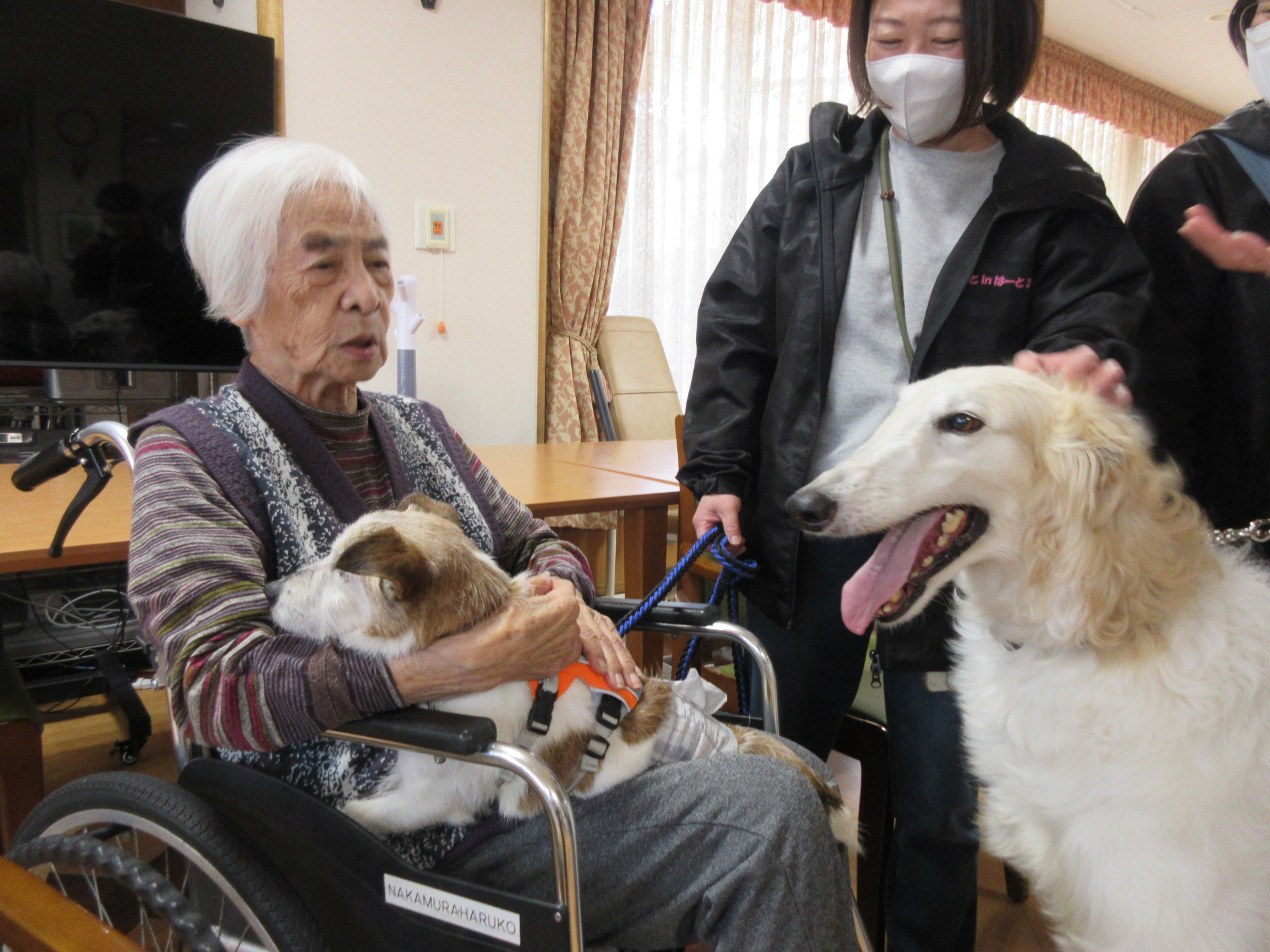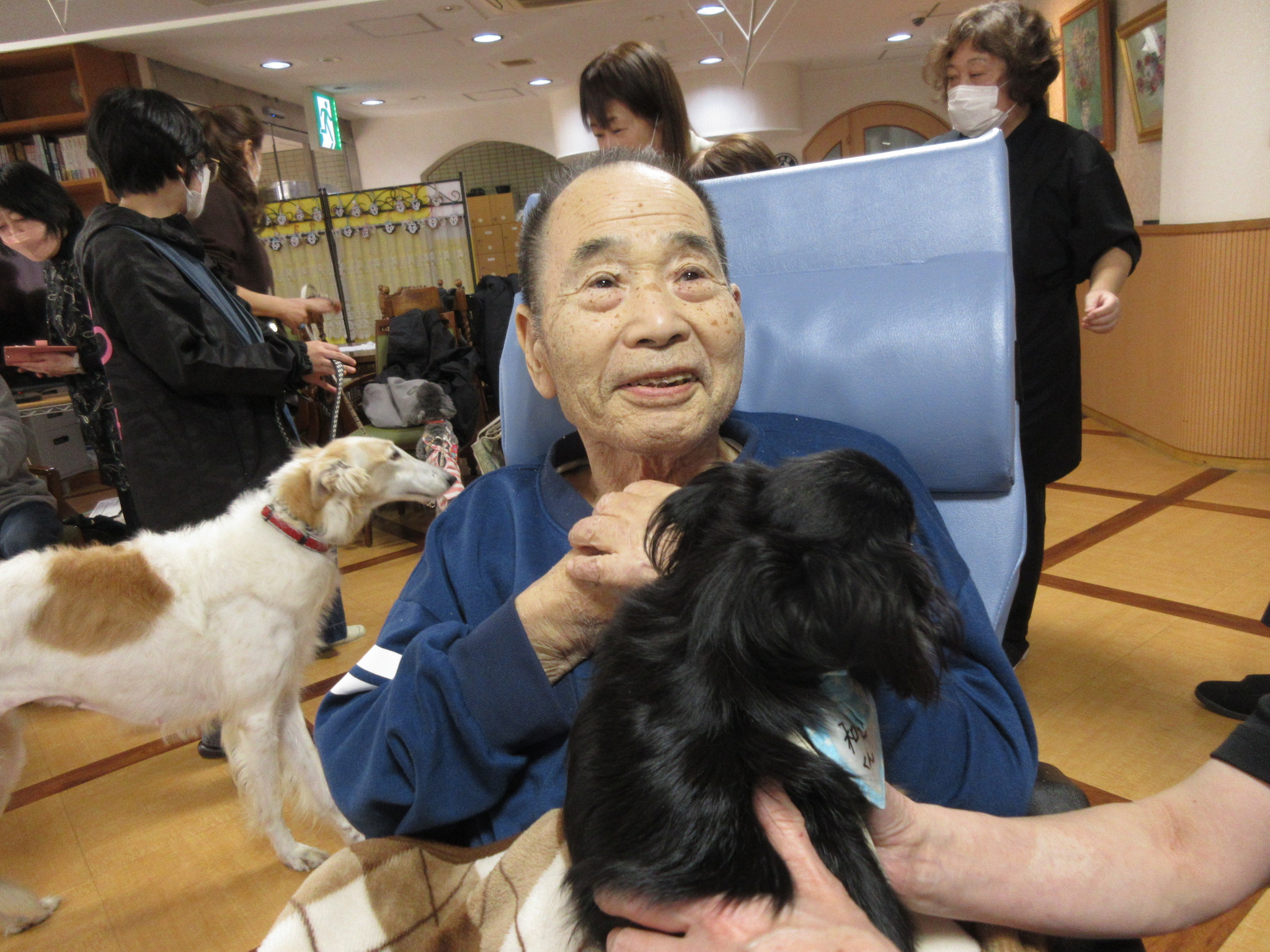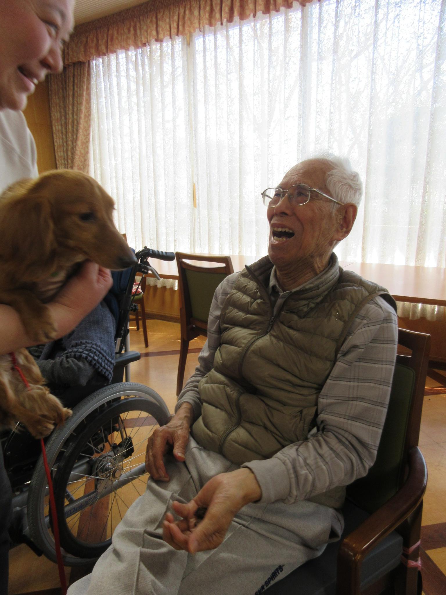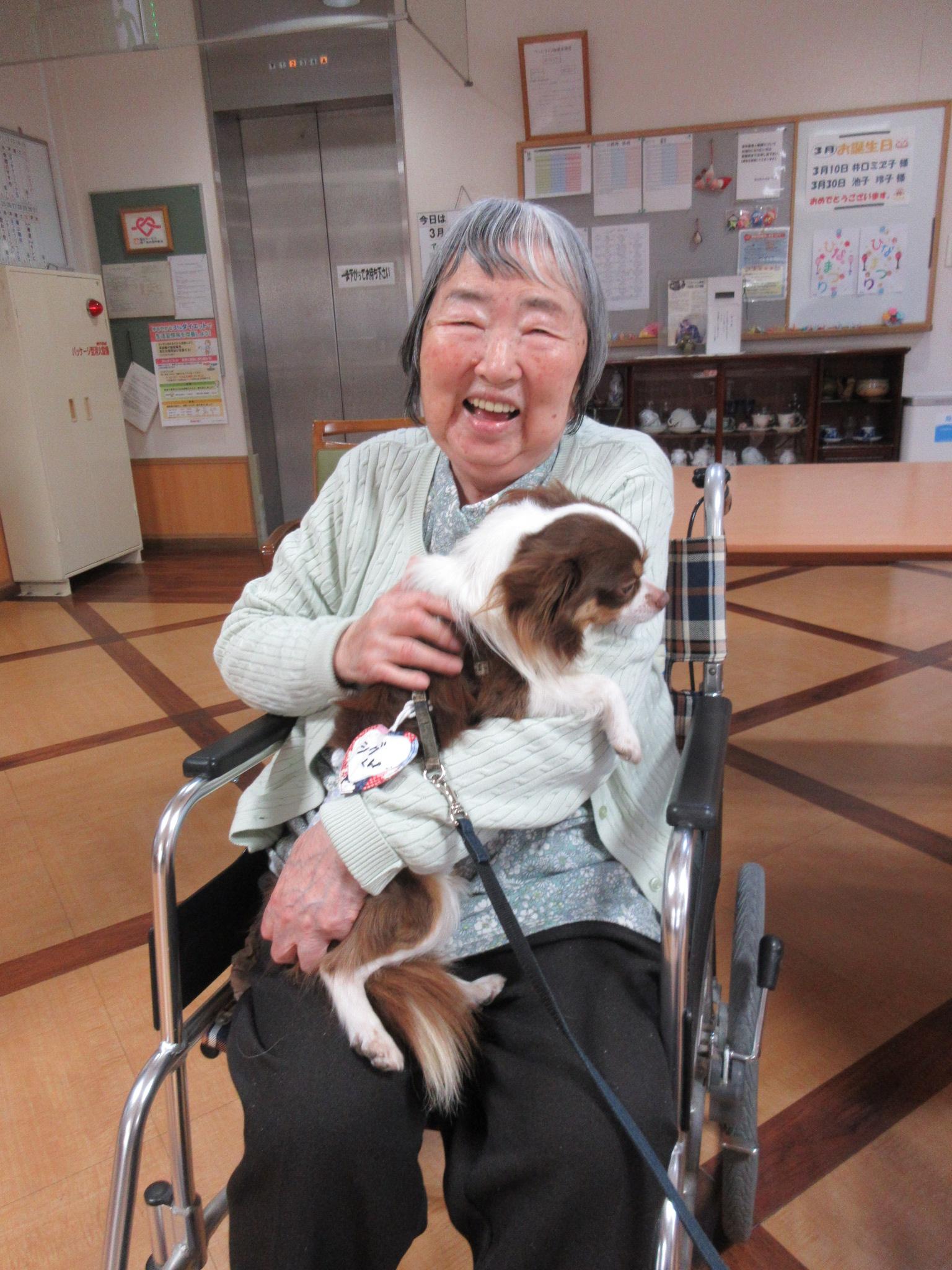 2026 年 3 月 20 日公開 足立施設 アニマルセラピー開催しました #ウェルハイム・東京 #令和8年(2026年) 2026年3月15日(日)アニマルセラピーを開催しました!! 9匹のワンちゃん達がご入居者様と触れ合いました(⋈◍>◡<◍)。✧♡ 抱っこしてー 抱っこさせてー みんないい笑顔 かわいいね~ 大きなワンちゃん(ボルゾイ)も来たよ~ はいポーズ!! 皆さんとても良いお顔をしていましたよ~またワンちゃんに来てもらいましょうね。
